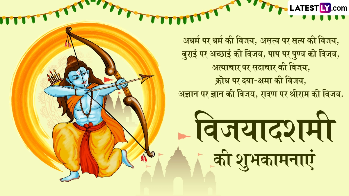 Vijayadashami 2025 Messages in Hindi: एक तरफ जहां देशभर में हिंदू पंचांग के अनुसार,आश्विन शुक्ल प्रतिपदा से आश्विन शुक्ल नवमी तक शारदीय नवरात्रि (Sharad Navratri) मनाई जाती है तो वहीं आश्विन शुक्ल षष्ठी से पश्चिम बंगाल, असम, ओडिशा और त्रिपुरा जैसे राज्यों में पांच दिवसीय दुर्गा पूजा (Durga Puja) का भव्य आगाज होता है. शारदीय नवरात्रि की महा नवमी (Maha Navami) के अगले दिन दुर्गा पूजा उत्सव के आखिरी दिन विजयादशमी (Vijayadashami) का पर्व मनाया जाता है, जिसे बंगाली समुदाय के लोग बिजोया दशमी के तौर पर मनाते हैं. इस दिन महिलाएं सिंदूर खेला का आयोजन करती हैं और एक-दूसरे को सिंदूर लगाती हैं. वहीं कई जगहों पर इस दिन लंकापति रावण के पुतलों का दहन किया जाता है. इस साल 22 सितंबर 2025 से शारदीय नवरात्रि की शुरुआत हुई थी, जबकि 28 सितंबर 2025 को दुर्गा पूजा का आगाज हुआ था और 2 अक्टूबर 2025 को विजयादशमी मनाई जा रही है.