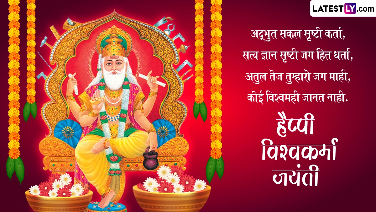 Vishwakarma Jayanti 2024 Messages in Hindi: हिंदू पंचांग के अनुसार, हर साल माघ मास के शुक्ल पक्ष की त्रयोदशी तिथि को विश्वकर्मा जयंती (Vishwakarma Jayanti) मनाई जाती है और आज (22 फरवरी 2024) महाराष्ट्र (Maharashtra), गुजरात (Gujarat) और राजस्थान (Rajasthan) के अलावा देश के विभिन्न हिस्सों में विश्वकर्मा जयंती मनाई जा रही है. पौराणिक कथाओं के अनुसार भगवान विश्वकर्मा (Bhagwan Vishwakarma) को ब्रह्मांड का पहला इंजीनियर कहा जाता है और उन्हें देवताओं का शिल्पकार भी माना जाता है. भगवान विश्वकर्मा ने ही महादेव का त्रिशूल, सुदर्शन चक्र तथा अन्य देवी-देवताओं के अस्त्र-शस्त्र एवं सोने की लंका, द्वारका में भगवान श्रीकृष्ण के महल, इंद्रदेव के स्वर्गलोक इत्यादि का निर्माण किया था. विश्वकर्मा जयंती पर लोग अपने घरों, कार्यालयों, फैक्ट्री में मशीनरी एवं कल-पुर्जों की पूजा करते हैं.