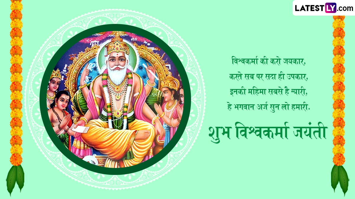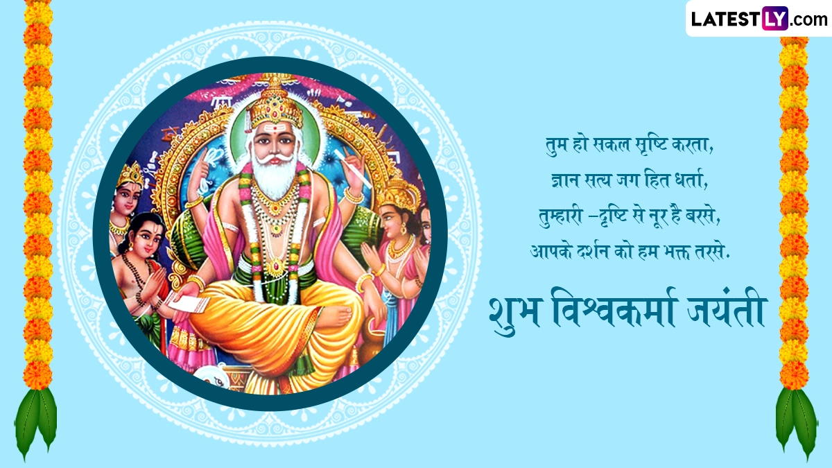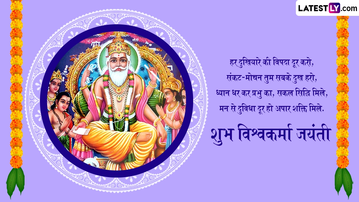 विश्वकर्मा पूजा के पावन अवसर पर भगवान विश्वकर्मा को प्रसन्न करने के लिए कारखानों और फैक्ट्रियों में मशीनों व उपकरणों की पूजा की जाती है. ऐसी मान्यता है कि ऐसा करने से करोबार में बढ़ोत्तरी होती है और आर्थिक तंगी का सामना नहीं करना पड़ता है. इसके साथ ही इस पर्व की बधाई दी जाती है. ऐसे में इस अति पावन अवसर पर आप भी इन हिंदी मैसेजेस, वॉट्सऐप विशेज, कोट्स और जीआईएफ ग्रीटिंग्स के जरिए दोस्तों-रिश्तेदारों से शुभ विश्वकर्मा पूजा कह सकते हैं.