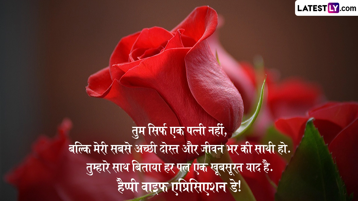 Wife Appreciation Day 2025 Wishes: पत्नी (Wife) के प्रति प्यार, सम्मान और उनकी तारीफ करने के लिए हर साल सितंबर (September) महीने के तीसरे रविवार को पत्नी प्रशंसा दिवस यानी वाइफ एप्रिसिएशन डे (Wife Appreciation Day) मनाया जाता है और इस साल 21 सितंबर 2025 को पत्नियों को समर्पित यह दिन मनाया जा रहा है. सालगिरह या वैलेंटाइन डे के विपरित, यह अवसर विशुद्ध रुप से पत्नियों के हर छोटे-बड़े काम के लिए उन्हें सम्मान और सराहना देने का दिन है. इस दिवस की शुरुआत का सटीक वर्ष अज्ञात है, लेकिन इसके अस्तित्व को साल 2006 के बाद से मान्यता मिली है. यह एक ऐसा दिन है जो आपको रुकने, दिनचर्या से आगे देखने और उस खास व्यक्ति का आभार व्यक्त करने की याद दिलाता है, जो जीवन के हर उतार-चढ़ाव में आपके साथ खड़ा है.
