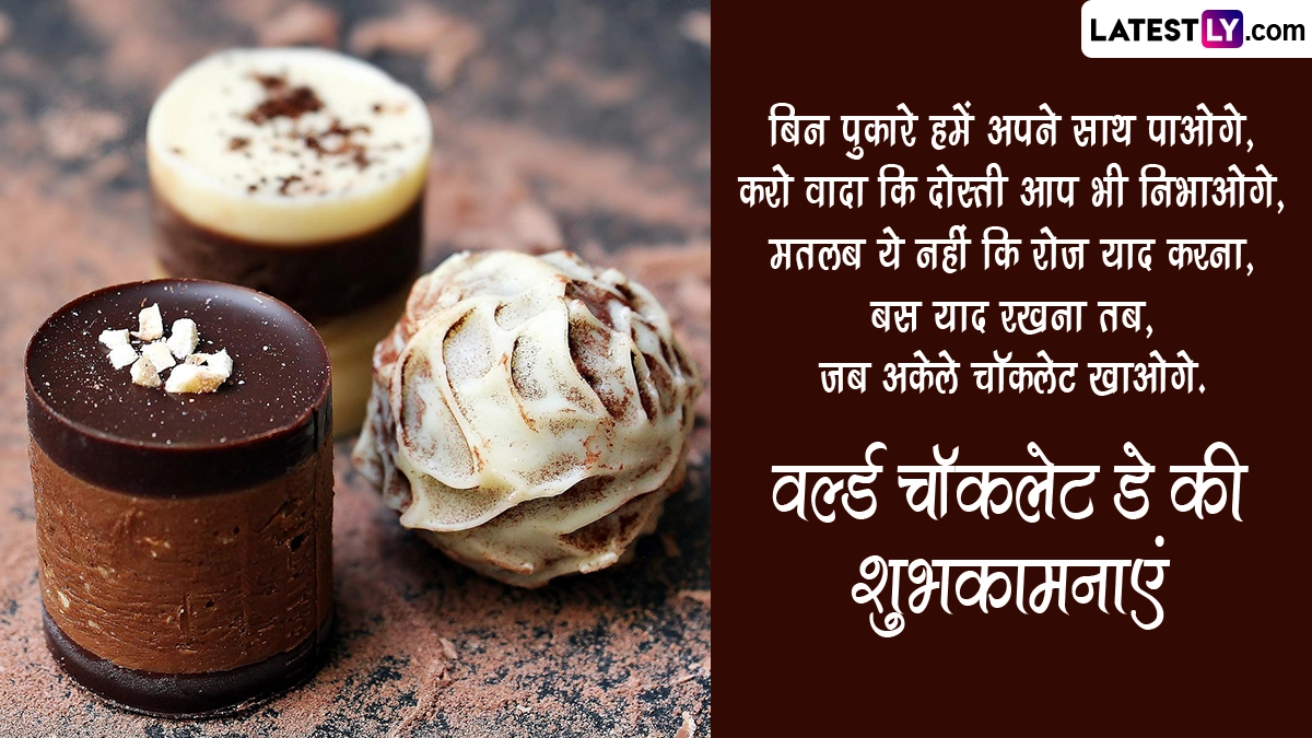 पहली बार यूरोप में सन 1550 में 7 जुलाई को ही वर्ल्ड चॉकलेट डे मनाया गया था, जिसके बाद से इस दिवस को दुनिया के कई देशों में मनाया जाने लगा. वर्ल्ड चॉकलेट डे पर चॉकलेट से अपनों का मुंह मीठा कराने के अलावा उनके साथ शुभकामना संदेशों को भी शेयर किया जा सकता है. आप इन शानदार हिंदी विशेज, वॉट्सऐप मैसेजेस, कोट्स, फेसबुक ग्रीटिंग्स के जरिए अपनों को वर्ल्ड चॉकलेट डे की शुभकामनाएं दे सकते हैं.