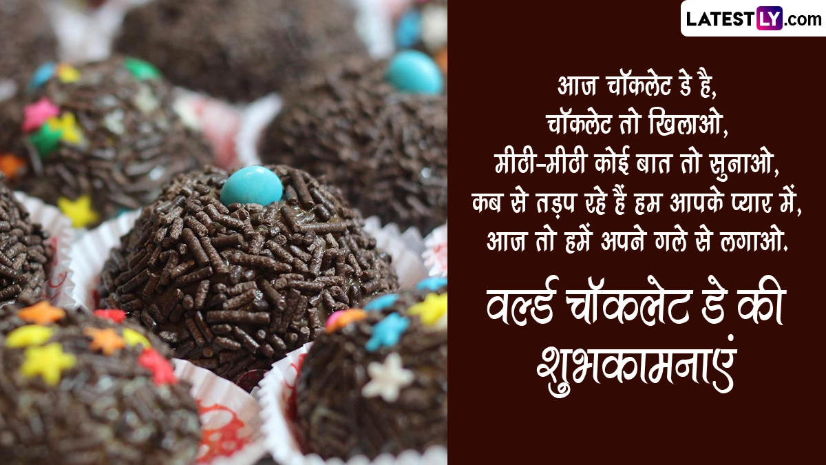 World Chocolate Day 2024 Wishes in Hindi: हर साल वैलेंटाइन वीक (Valentine Week) को दौरान तीसरे दिन यानी 9 फरवरी को दुनिया भर के कपल्स चॉकलेट डे (Chocolate Day) मनाते हैं. इसमें कोई दो राय नहीं है कि चॉकलेट डे कपल्स के लिए बेहद खास होता है, इसलिए वो इस दिन न सिर्फ एक-दूसरे को चॉकलेट देते हैं, बल्कि उससे एक-दूसरे का मुंह भी मीठा कराते हैं. वैलेंटाइन वीक के तीसरे दिन मनाए जाने वाले चॉकलेट डे के अलावा हर साल 7 जुलाई को भी दुनिया भर में चॉकलेट डे मनाया जाता है, जिसे विश्व चॉकलेट डे या वर्ल्ड चॉकलेट डे (World Chocolate Day) कहा जाता है. इस दिन लोग अपने पार्टनर या प्रियजनों को चॉकलेट खिलाकर उनका मुंह मीठा करवाते हुए अपने रिश्ते में प्यार की मिठास घोलने की कोशिश करते हैं.