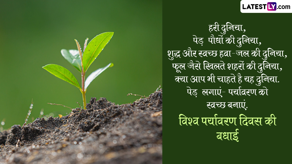 World Environment Day 2024 Messages in Hindi: दुनिया भर में 5 जून को विश्व पर्यावरण दिवस यानी वर्ल्ड एनवायरनमेंट डे (World Environment Day) सेलिब्रेट किया जाता है. इस दिन को इसलिए मनाया जाता है, ताकि ज्यादा से ज्यादा लोगों को प्रकृति और पर्यावरण (Nature and Environment) से जुड़ी समस्याओं के बारे में जागरूक किया जा सके. इसके साथ ही पर्यावरण संरक्षण (Environment Protection) के लिए कोई ठोस कदम उठाया जा सके. इस दिवस को मनाने का फैसला सन 1972 में संयुक्त राष्ट्र संघ द्वारा स्टॉकहोम सम्मेलन में किया गया था, तब से हर साल 5 जून को विश्व पर्यावरण दिवस मनाने का निर्णय लिया गया और पहली बार 5 जून 1974 को विश्व पर्यावरण दिवस मनाया गया था, जिसकी थीम ‘एक पृथ्वी’ थी. इस साल यानी 2024 के लिए Land Restoration, Desertification And Drought Resilience थीम निर्धारित की गई है. जो ‘हमारी भूमि’ नारे के तहत भूमि बहाली, मरुस्थलीकरण और सूखे पर केंद्रित है.