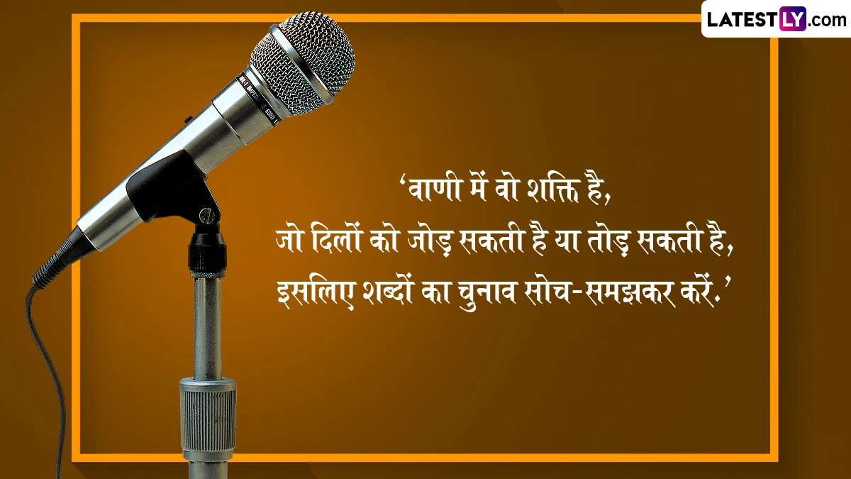 World Speech Day 2025: वाणी में आपका व्यक्तित्व छिपा होता है, जो दूसरों को प्रेरित करने, भावनाएं जगाने, विभिन्न पृष्ठभूमि के लोगों को एकजुट करने की शक्ति होती है. मां की लोरी से लेकर एक प्रेरक वक्ता की प्रभावशाली वाणी तक, हमारी सोच एवं भावनाओं को आकार देने और हमारे व्यवहार को प्रभावित करने की शक्ति रखती है. वाणी के इस प्रभाव को देखते हुए प्रत्येक वर्ष 16 अप्रैल को विश्व वाणी दिवस मनाया जाता है, ताकि हमारे जीवन में आवाज के महत्व को उजागर किया जा सके. इसका मुख्य उद्देश्य है कि व्यक्ति अपनी वाणी का यथोचित ध्यान रखें, जरूरत होने पर आवाज संबंधी समस्याओं से जूझ रहे लोगों का समर्थन करे. इस अवसर पर कुछ समय निकालें, यह सोचने-समझने के लिए कि आपकी वाणी ने स्वयं आपको और आपके आसपास के जीवन को कैसे प्रभावित किया है. विश्व वाणी दिवस को ज्यादा प्रभावशाली बनाने के लिए अपने प्रियजनों को भेजें ये प्रेरक कोट्स..यह भी पढ़ें: Jallianwala Bagh Massacre: जलियांवाला बाग हत्याकांड! भारतीय इतिहास की अत्यंत दुखद घटना, जब ब्रिटिश सैनिकों ने भीड़ पर चलाई थी गोलियां
