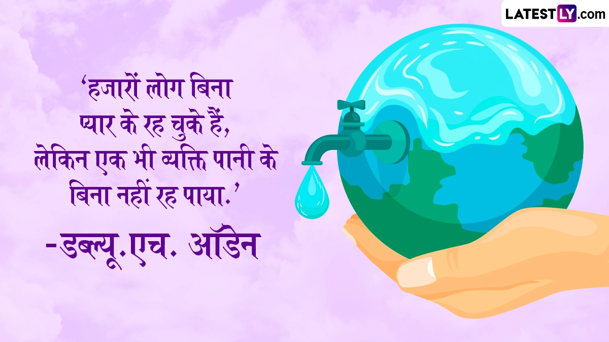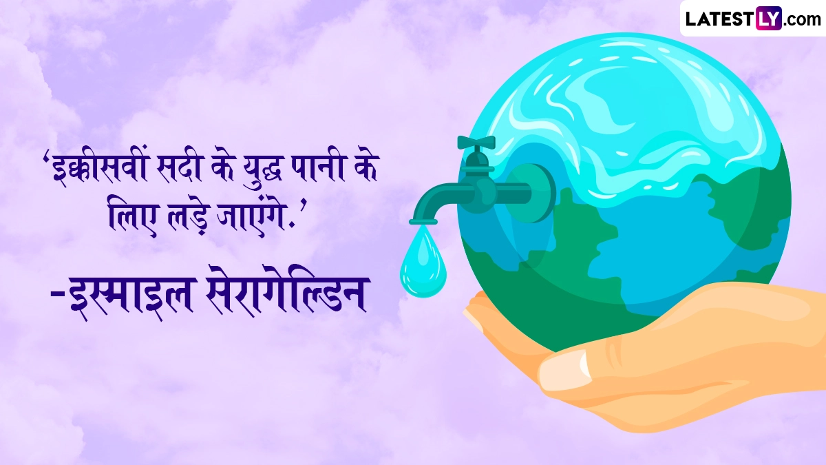 World Water Day 2025 Valuable Quotes in Hindi: जल एवं उसकी स्वच्छता संकट से निपटने हेतु हर वर्ष 22 मार्च को विश्व जल दिवस (World Water Day) मनाया जाता है. संयुक्त राष्ट्र इस अवसर पर हर साल जल और स्वच्छता पर अपनी रिपोर्ट जारी करता है. गौरतलब है कि ग्लेशियर, पर्वतीय अपवाह और बर्फ पिघलने से लगभग दो अरब लोगों को पीने, कृषि और ऊर्जा उत्पादन के लिए पानी मिलता है. विश्व जल दिवस का मूलभूत उद्देश्य ग्लेशियरों के पिघलने से उत्पन्न चुनौतियों के बारे में जागरूकता बढ़ाना, और वैश्विक समुदाय से कार्बन उत्सर्जन में कमी लाने और ग्लेशियरों के सिकुड़ने और जल-प्रवाह में अनिश्चितताओं के अनुकूल स्थानीय नीति को लागू करने का आह्वान करना है. पर्यावरण अनियमितता, जल-दुरुपयोग तथा निरंतर बढ़ती जनसंख्या जैसी समस्याओं को देखते हुए संयुक्त राष्ट्र भविष्य में भारी जल-संकट का इशारा कई बार कर चुका है. ऐसे में जल संरक्षण के प्रति अपना दायित्व निभाते हुए लोगों को उपयोगी संदेश भेजकर विश्व जल दिवस सेलिब्रेशन मनाना चाहिए.