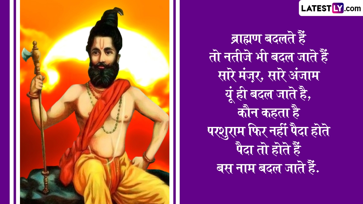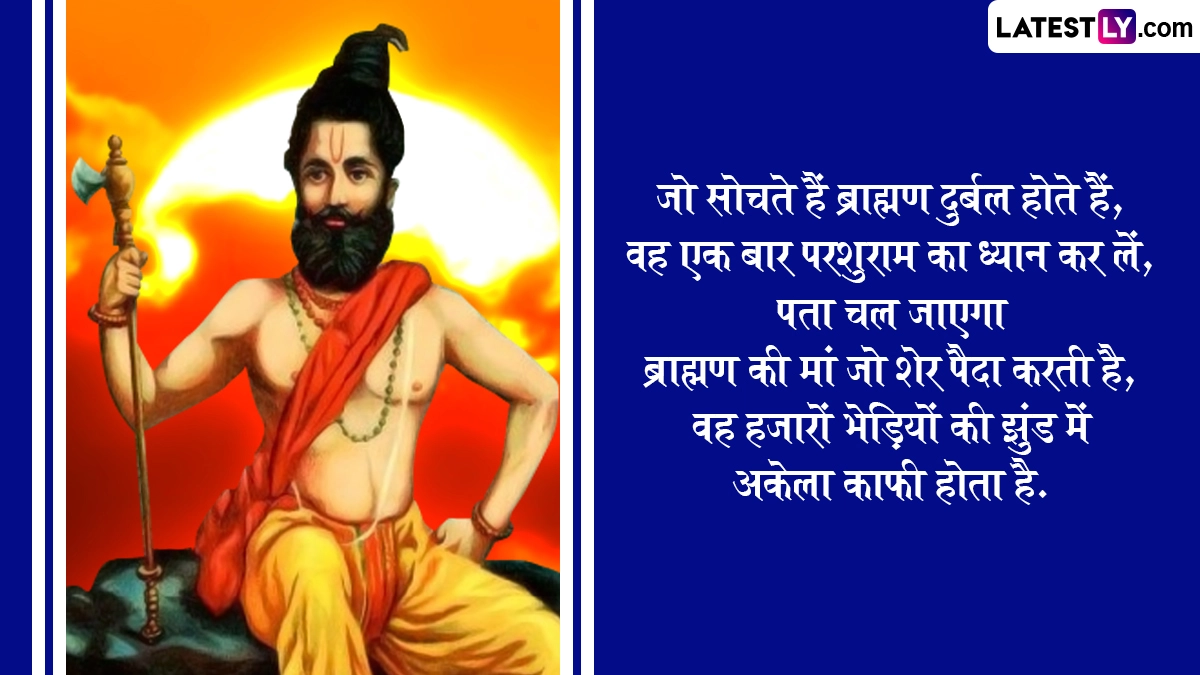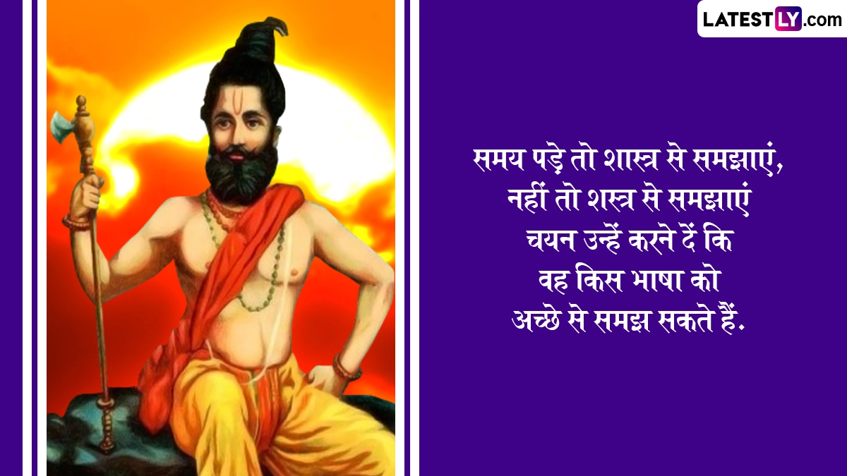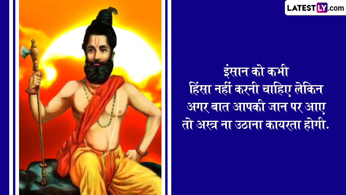हिंदू पंचांग के अनुसार प्रत्येक वर्ष वैशाख माह के शुक्ल पक्ष की तृतीया के दिन भगवान विष्णु के छठे अवतार भगवान परशुराम का जन्म हुआ था. इसलिए इस दिन को परशुराम जयंती के रूप में मनाया जाता है. हिंदू धर्म ग्रंथों में उल्लेख है कि परशुराम ने क्षत्रिय वंश की बढ़ती दमनकारी नीति से परेशान होकर समस्त पृथ्वी को क्षत्रिय विहीन कर दिया था. इसके साथ ही परशुराम ने समाज के कल्याणार्थ कई अनमोल कार्य किये हैं. इस वर्ष 30 अप्रैल 2025, बुधवार को परशुराम जयंती मनाई जाएगी. गौरतलब है कि इसी दिन अक्षय तृतीया का पर्व भी मनाया जाता है. आइये परशुराम जयंती के अवसर पर ये प्रभावशाली कोट्स भेजकर पर्व को सेलिब्रेट करें.