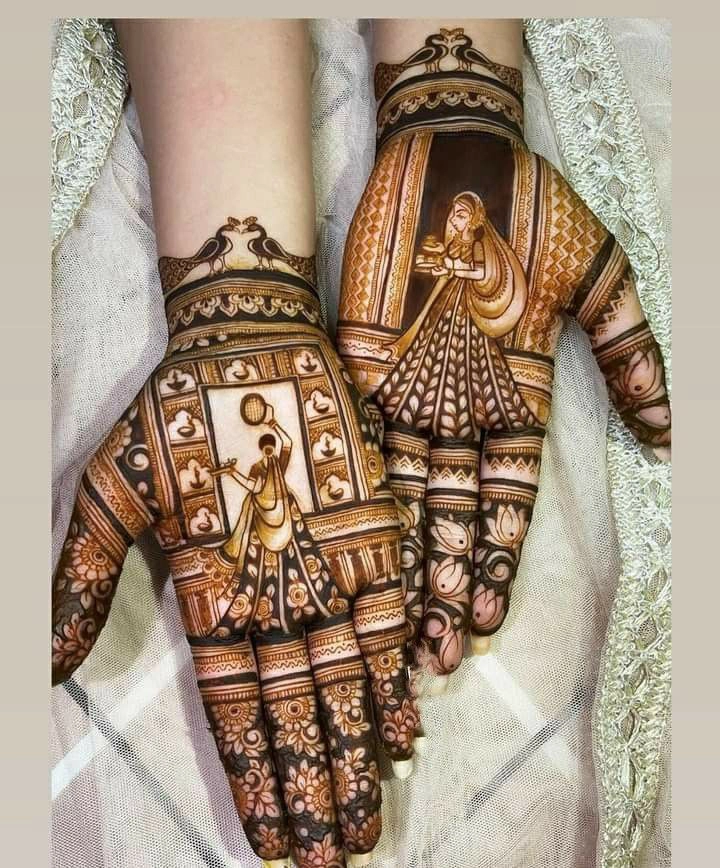 पूरे हाथ में मेहंदी लगाना इस अवसर का एक मुख्य आकर्षण है. यह डिजाइन आपके हाथों को एक खास लुक देता है.