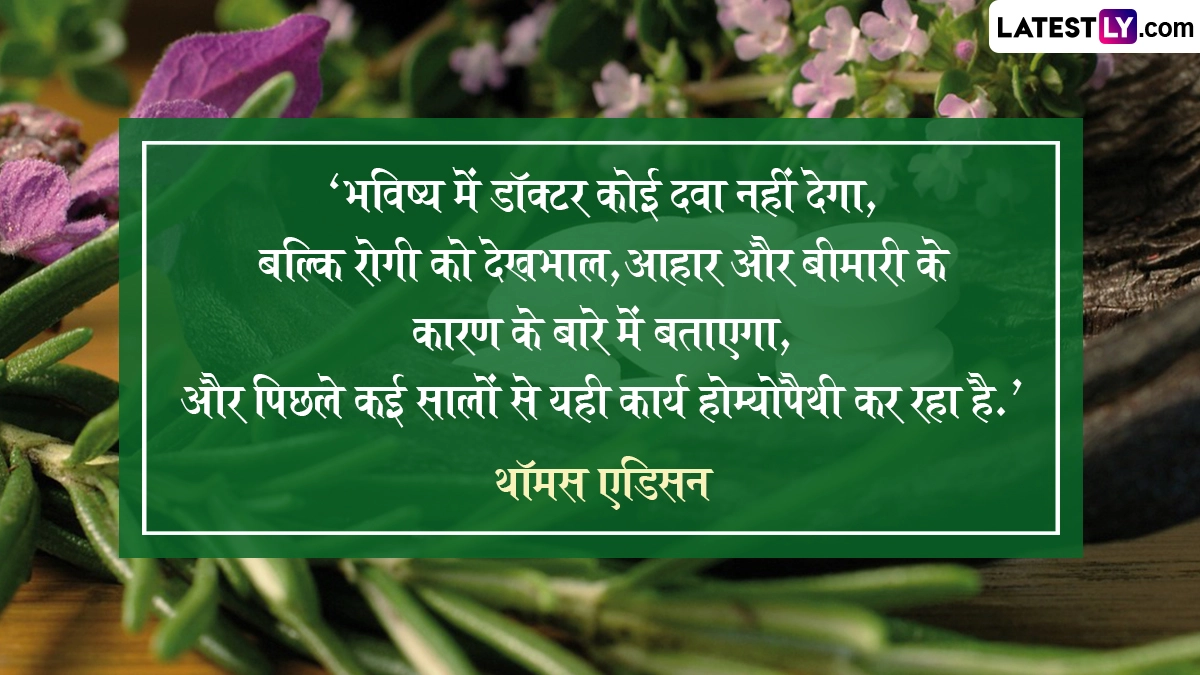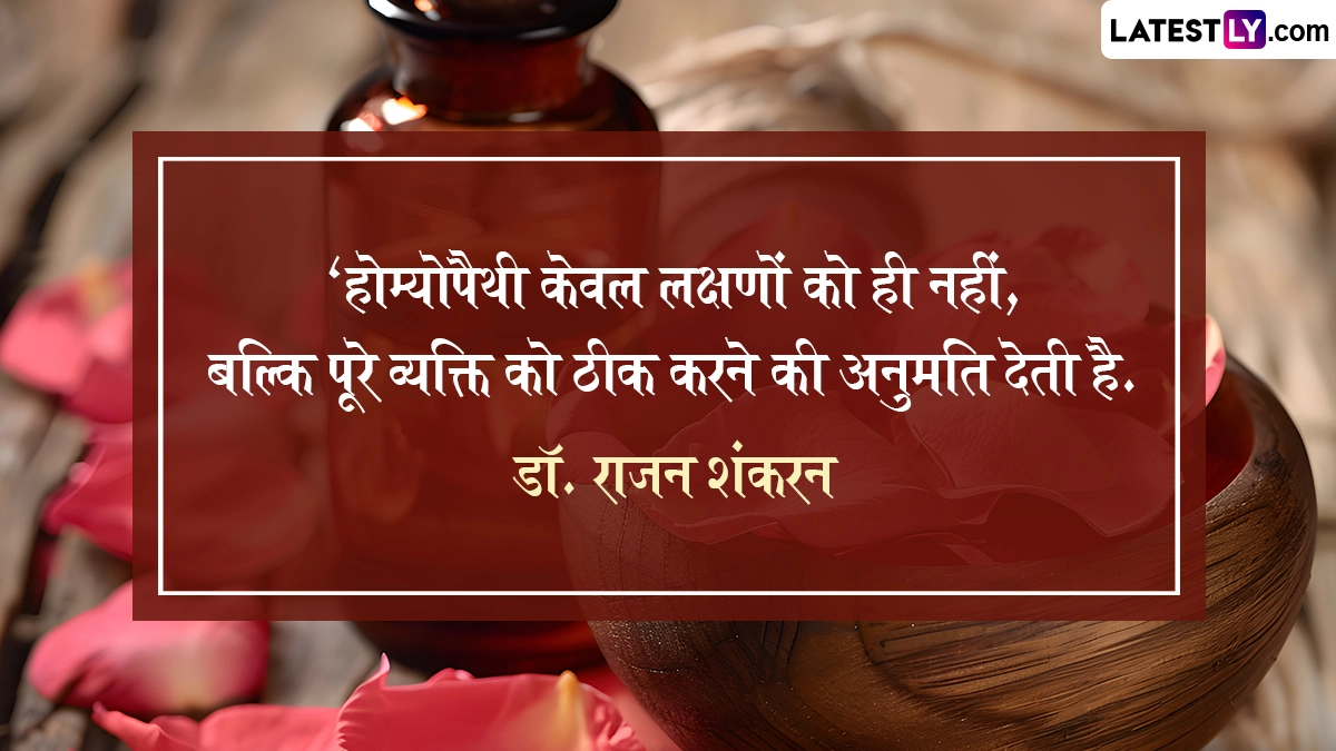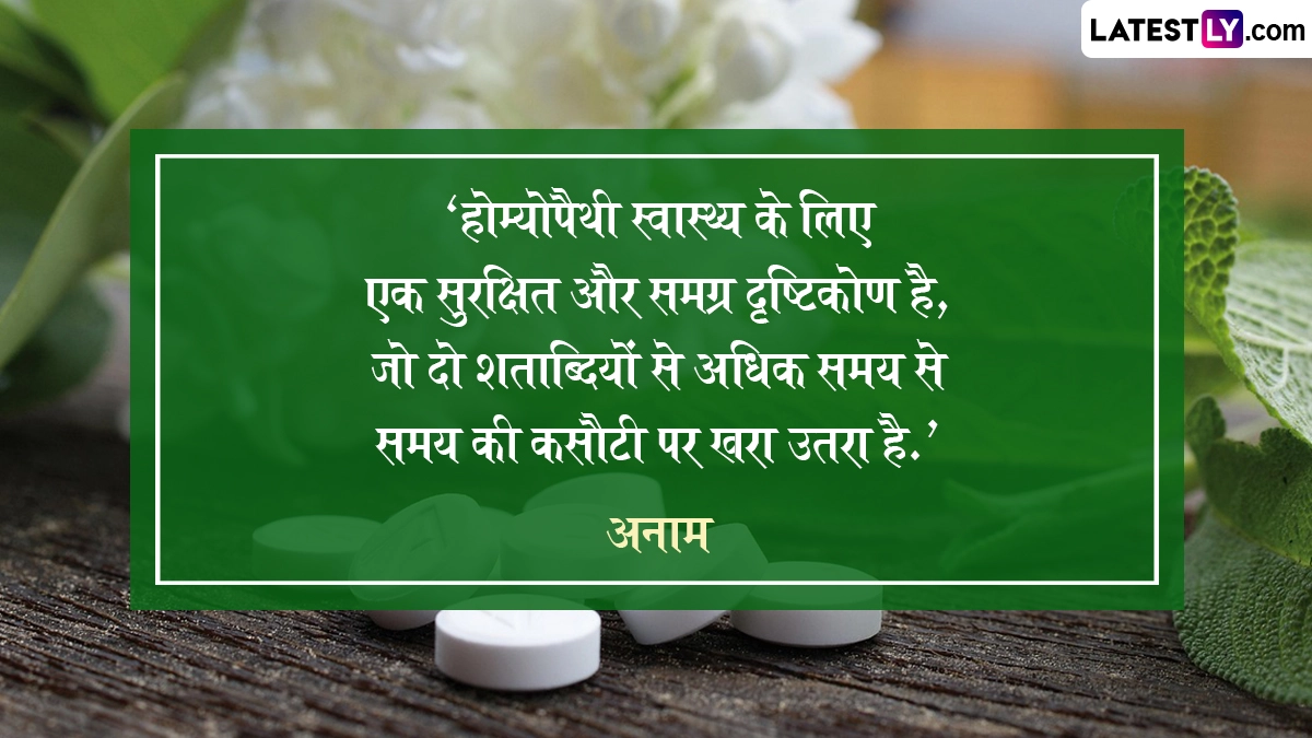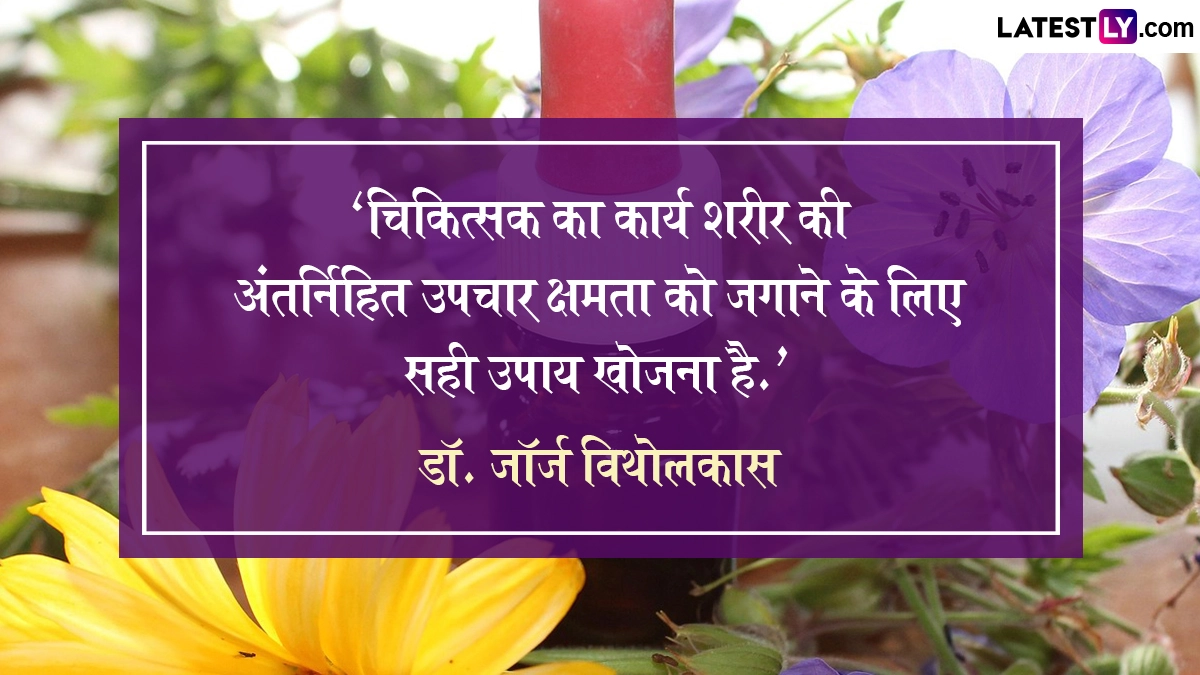 लोकप्रियता के संदर्भ में भले ही एलोपैथी उपचार आज नंबर-वन पर हो, लेकिन जहां तक विश्वसनीयता की बात है तो होम्योपैथी उपचार का आज भी कोई विकल्प नहीं है. होम्योपैथी इलाज रोग को जड़ से उखाड़ने में तो सक्षम है ही, साथ ही यह एलोपैथी से कई गुना सस्ती और बिना किसी साइड इफेक्ट वाला इलाज है. होम्योपैथी उपचार की खोज 18वीं सदी के अंत में जर्मन चिकित्सक क्रिश्चियन डॉक्टर फ्रेडरिक सैमुअल हैनीमैन ने की थी. इसलिए उन्हीं के जन्म दिन (10 अप्रैल 1755) को विश्व होम्योपैथी दिवस के रूप में मनाया जाता है. यहां विश्व होमियोपैथी दिवस से संबंधित कुछ कोट्स दिये जा रहे हैं. अपने इष्ट-मित्रों को ये प्रभावशाली कोट्स शेयर कर विश्व होम्योपैथी दिवस सेलिब्रेट कर सकते हैं. यह भी पढ़ें : World Health Day: वर्ल्ड हेल्थ डे पर स्वास्थ मंत्रालय का संदेश.. अच्छी सेहत के लिए अच्छा खाना, भरपूर नींद और थोड़ी एक्सरसाइज है बहुत जरुरी