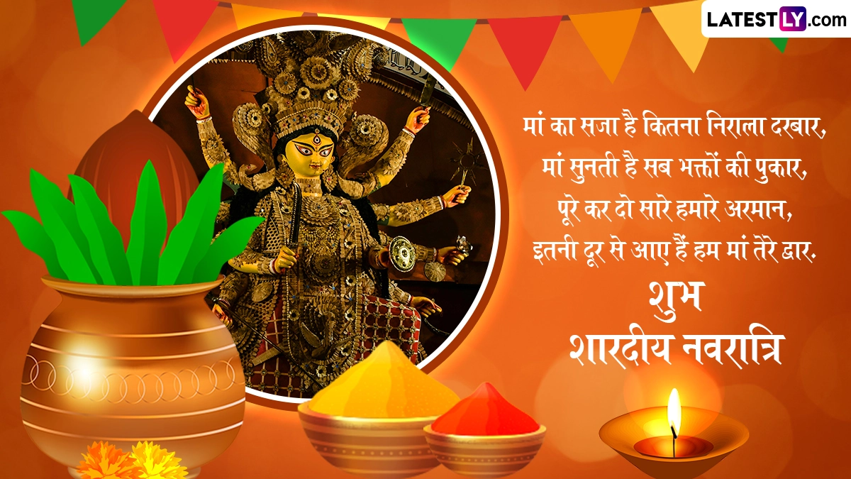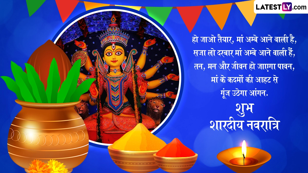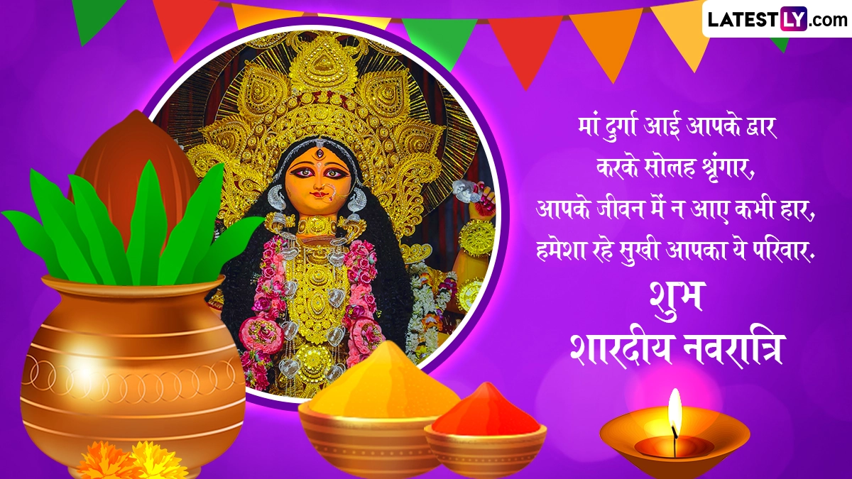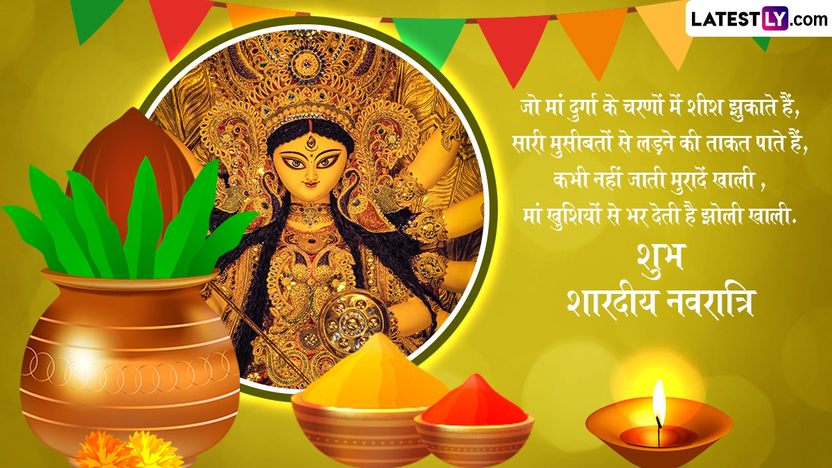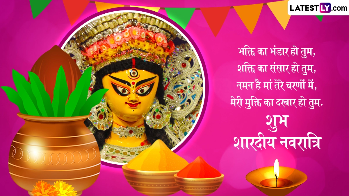कलश स्थापना के साथ नौ दिनों तक मां दुर्गा की उपासना शुरु हो जाती है. इसी दिन से दुर्गा चालीसा, दुर्गा सप्तशती का पाठ शुरु हो जाता है. कलश स्थापना को खुशहाली, सुख-समृद्धि और शुभता का प्रतीक माना जाता है, इसलिए नवरात्रि में कलश की स्थापना की जाती है. ऐसे में इस बेहद पावन अवसर पर आप इन हिंदी मैसेजेस, वॉट्सऐप विशेज, कोट्स, फेसबुक ग्रीटिंग्स को भेजकर अपनों को शुभ शारदीय नवरात्रि कहकर बधाई दे सकते हैं.
