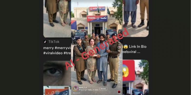 Fact Check: पिछले कुछ दिनों से सोशल मीडिया प्लेटफॉर्म्स, खासकर टिकटॉक (TikTok) और इंस्टाग्राम (Instagram) पर '7 मिनट 11 सेकंड' (7 Minute 11 Second) का एक कथित वीडियो चर्चा का विषय बना हुआ है. इस ट्रेंड के साथ कुछ तस्वीरें तेजी से वायरल हो रही हैं, जिनमें एक महिला (मैरी एस्टार) (Marry Astarr) और एक पुरुष (उमैर) (Umair) को पाकिस्तानी पुलिस (Pakistan Police) की हिरासत में दिखाया गया है. दावा किया जा रहा है कि वीडियो लीक होने के बाद अधिकारियों ने इन पर कानूनी कार्रवाई की है. हालांकि, जब इस वायरल तस्वीर (Viral Photo) की सच्चाई जानने की कोशिश की गई तो जांच में यह स्पष्ट हुआ है कि गिरफ्तारी का यह दावा पूरी तरह भ्रामक और फर्जी है. यह भी पढ़ें: The 'Marry 7 Min 11 Sec Viral Video' Trap: लीक MMS और स्कैंडल के नाम पर शुरू हुआ नया साइबर अटैक, भूलकर भी न करें इसे टच; नहीं तो हो सकता है धोखा