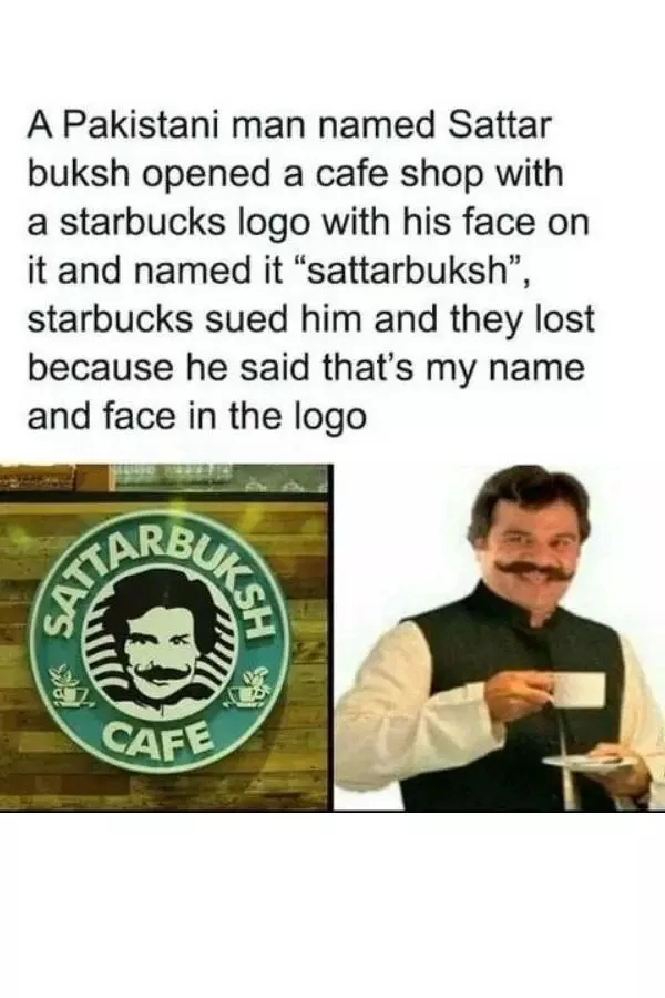 जब भी आप स्टारबक्स (Starbucks) के बारे में सोचते हैं, तो आपके दिमाग में उस हरे रंग की जलपरी वाला लोगो आता है, है ना. लेकिन पाकिस्तान में 2013 में इसी लोगो का एक मज़ेदार देसी वर्ज़न देखने को मिला. वहां दो दोस्तों, रिज़वान अहमद और अदनान यूसुफ ने 'सत्तरबख्श' (Sattarbuksh) नाम से एक कैफे खोला. यह नाम पाकिस्तान के एक आम नाम "सत्तार" और "बख्श" (जिसका मतलब सेवक होता है) को मिलाकर बनाया गया था. इसे आप नकल नहीं, बल्कि एक मज़ाकिया पैरोडी कह सकते हैं.