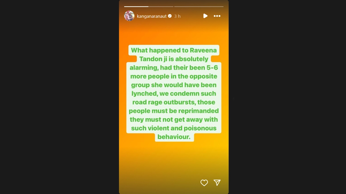 Raveena Tandon Case: अभिनेत्री से राजने बनीं कंगना रनौत ने रवीना टंडन के समर्थन में आवाज उठाई है. रवीना का एक वीडियो ऑनलाइन वायरल हुआ, जिसमें लोगों ने उनपर हमला करने की कोशिश की. अभिनेत्री ने इस घटना की निंदा की और इसे "पूरी तरह से चिंताजनक" बताया. अपने इंस्टाग्राम स्टोरीज़ पर उन्होंने लिखा, "रवीना टंडन जी के साथ जो हुआ है बिल्कुल चिंताजनक है; यदि विपक्षी समूह में 5-6 और लोग होते, तो उन्हें लिंच कर दिया जाता. हम ऐसे रोड रेज की उत्पीड़न की निंदा करते हैं. उन लोगों को धिक्कारना चाहिए. उन्हें ऐसे हिंसक और विषाक्त व्यवहार के साथ बचने नहीं दिया जाना चाहिए." Actress Raveena Tandon: मुंबई के बांद्रा में रवीना टंडन के साथ हुई झड़प के बाद पुलिस स्टेशन पहुंची दोनों पार्टियां, शिकायत करने से किया इनकार