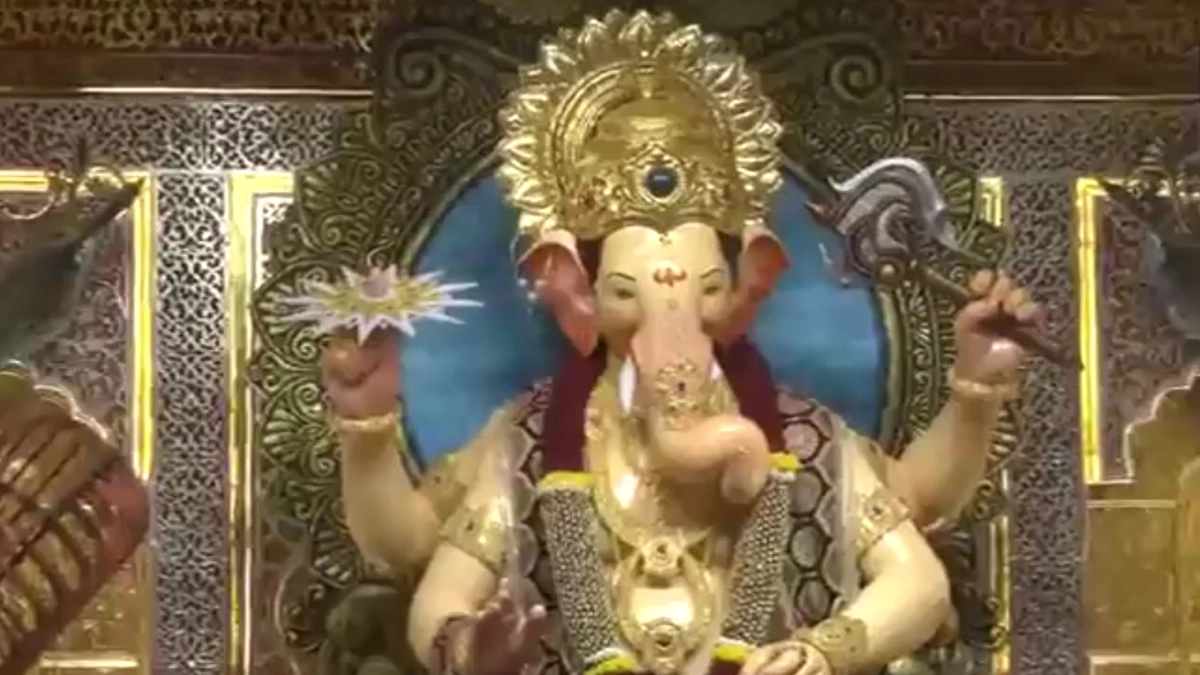 #WATCH | First look of Mumbai's Lalbaugcha Raja unveiled ahead of Ganesh Chaturthi pic.twitter.com/rZ7G1QZ5zv