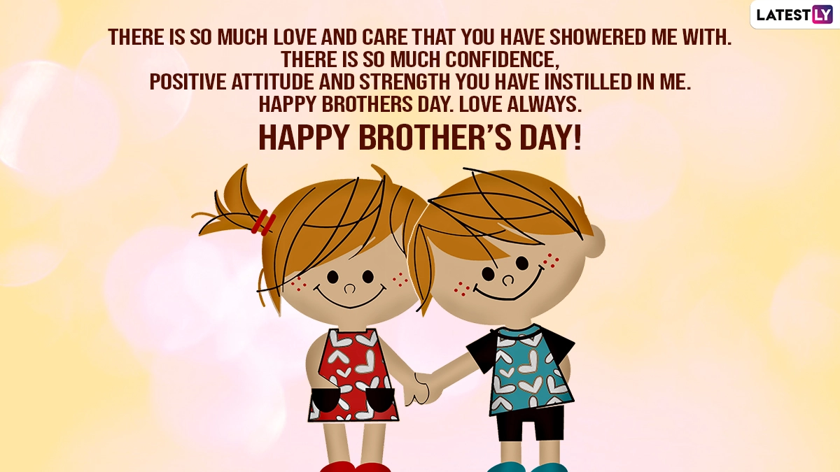 National Brother's Day 2024 Wishes: भाई-बहन के खास रिश्ते का जश्न मनाने के लिए हर साल नेशनल ब्रदर्स डे (National Brother's Day) हर साल 24 मई को मनाया जाता है. यह दिन एक भाई (Brother) के महत्व और हमारे जीवन में उसकी विशेष भूमिका का जश्न मनाता है. हर किसी के जीवन में भाई ईश्वर का एक आशीर्वाद होता है, क्योंकि भाई-बहनों के साथ हर इंसान का रिश्ता अटूट होता है. बचपन में भाई-बहन शरारतों में भागीदार होते हैं तो कभी किसी परेशानी में फंस जाने पर एक-दूसरे की मदद करते हैं. भाई-बहन अक्सर एक-दूसरे का समर्थन करते हैं. संकट और अकेलेपन के समय में भाई का साथ होना बहुत राहत देता है. ऐसे में ब्रदर्स डे पर अपने भाई को स्पेशल फील कराने के लिए आप सरप्राइज और गिफ्ट्स का सहारा ले सकते हैं. इसके साथ ही इन शानदार विशेज, वॉट्सऐप स्टिकर्स, मैसेजेस, जीआईएफ ग्रीटिंग्स, इमेजेस और कोट्स को अपने भाई संग शेयर कर उन्हें हैप्पी नेशनल ब्रदर्स डे (Happy National Brother's Day) विश कर सकते हैं. यह भी पढ़ें: Brother’s Day 2024 Funny Memes: टीवी रिमोट की लड़ाई से लेकर प्रैंक करने के लिए टीम बनाने तक, नेशनल ब्रदर्स डे को लेकर सोशल मीडिया पर छाए ये फनी मीम्स