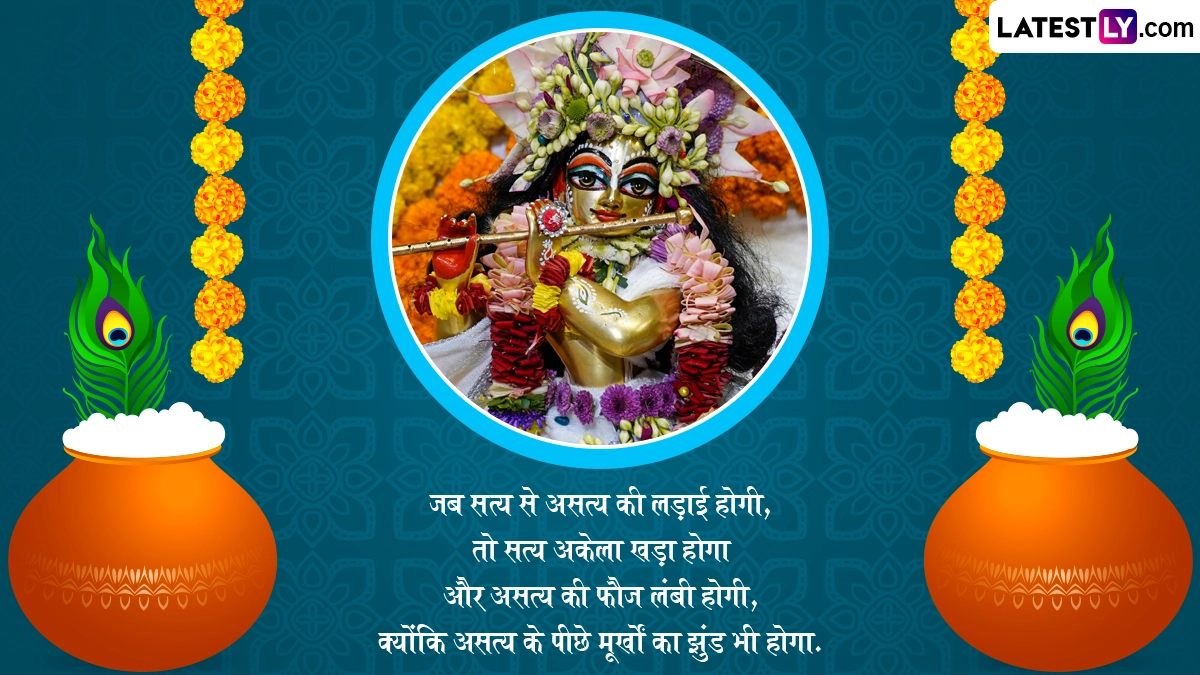 Shri Krishna Quotes From Bhagavad Gita: भगवान विष्णु ने सृष्टि पर दुष्टों एवं उनकी शक्तियों से रक्षा के लिए 9 बार अवतार लिये, जिसमें सबसे अनोखे थे भगवान श्रीकृष्ण. उन्होंने बचपन से युवा और उसके बाद मथुरा गमन तक तमाम दिव्य लोक-लीलाएं रची. भगवान श्रीकृष्ण का व्यक्तित्व विशालकाय है. उनके जीवन का एक रोचक और रोमांचक पहलू था महाभारत, जिसके लिए उन्होंने कौरव के खिलाफ पांडव के साथ युद्ध में हिस्सा लिया, और वह भी इस प्रण के साथ कि वह युद्ध क्षेत्र में हथियार रहित होंगे. महाभारत के दरमियान ही श्रीकृष्ण ने कुरूक्षेत्र के मैदान से लोगों को गीता का ज्ञान दिया, जिसमें मनुष्य को जीवन, कर्म, ध्यान, शांति, सत्य, योग और सफलता के बारे में सभी महत्वपूर्ण विषयों का गहराई से ज्ञान प्राप्त होता है. कृष्ण जन्माष्टमी के अवसर पर अपने मित्रों को गीता के अनमोल कोट्स भेजकर सबके साथ इस पर्व को सेलिब्रेट कर सकते हैं. यह भी पढ़ें: Shri Krishna Quotes: कृष्ण जन्माष्टमी पर कान्हा के इन प्यार भरे कोट्स को सोशल मीडिया के जरिए दोस्तों-रिश्तेदारों संग करें शेयर