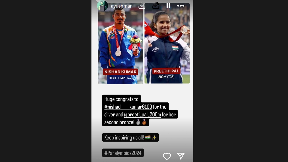आयुष्मान खुराना ने पेरिस पैरालिंपिक में पदक जीतने पर प्रीति पाल और निषाद कुमार की सराहना की