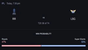 राजस्थान रॉयल्स बनाम लखनऊ सुपर जायंट्स के मैच का गूगल के अनुसार जीत की संभावना(Royals vs Super Giants Google Win Probability):