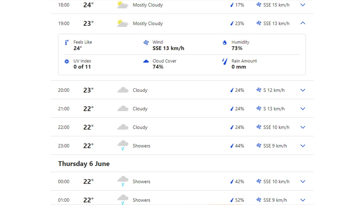 यूएसए में बारिश एक प्रमुख कारक रही है और टूर्नामेंट से पहले कई मैच धुल गए हैं. प्रशंसक चाहेंगे कि भारत बनाम आयरलैंड T20 विश्व कप 2024 मैच में बारिश उनके पक्ष में हो. भारत राष्ट्रीय क्रिकेट टीम बनाम आयरलैंड राष्ट्रीय क्रिकेट टीम मैच के मौसम पूर्वानुमान के बारे में जानने के लिए उत्सुक प्रशंसक अधिक पढ़ सकते हैं.