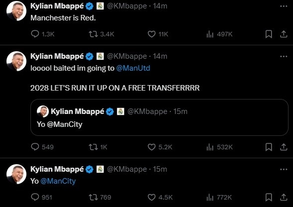 1. फुटबॉल की राय: हैकर्स ने एम्बाप्पे के नाम से फुटबॉल से संबंधित अपनी निजी राय पोस्ट की, जिसमें अन्य खिलाड़ियों की तुलना में क्रिस्टियानो रोनाल्डो और लियो मेस्सी पर विवादास्पद टिप्पणियाँ शामिल थीं.